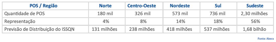 O quadro demonstra uma maior concentração de operações na região Sudeste, mas, ainda assim, é relevante a previsão de distribuição do ISSQN para as demais regiões do Brasil.